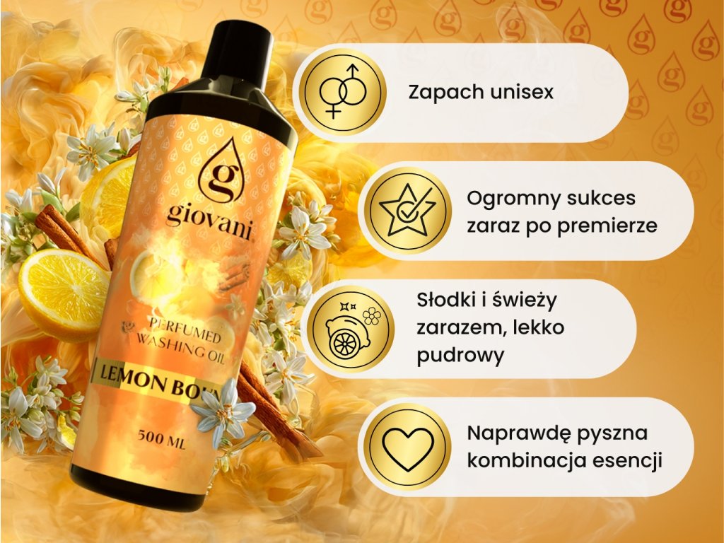 Giovani® to ekskluzywna i luksusowa marka perfum do prania. Dołożyliśmy wszelkich starań, aby zapewnić ich wysoką jakość. Podczas opracowywania tych zapachów ważne było dla nas osiągnięcie ich silnej intensywności i długotrwałej trwałości, abyśmy mogli mówić o Giovani® jako o najwyższej jakości marce perfum do prania na rynku. Ich wielką zaletą jest to, że nie zatykają pralki, nie pozostawiają tłustego osadu i nie brudzą ubrań. Dzięki zawartości niektórych substancji, nasze olejki dbają również o kolor prania. Są wegańskie, wolne od dioksanów, SVHC, parabenów, tenzydów, substancji PBT/vPvB, metali ciężkich, pozostałości zanieczyszczeń, mikroplastików czy nanoplastików. Wyjątkowości marce Giovani® dodaje jej luksusowy design. |