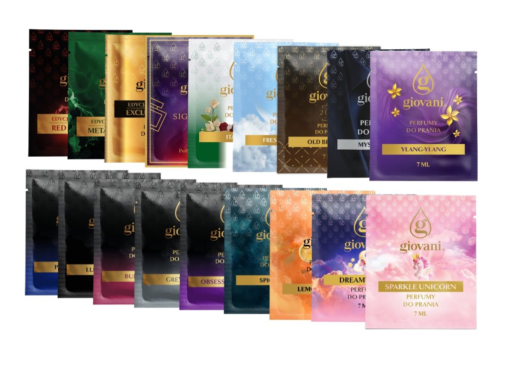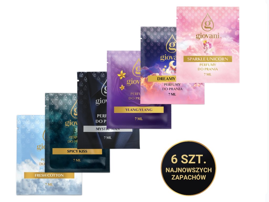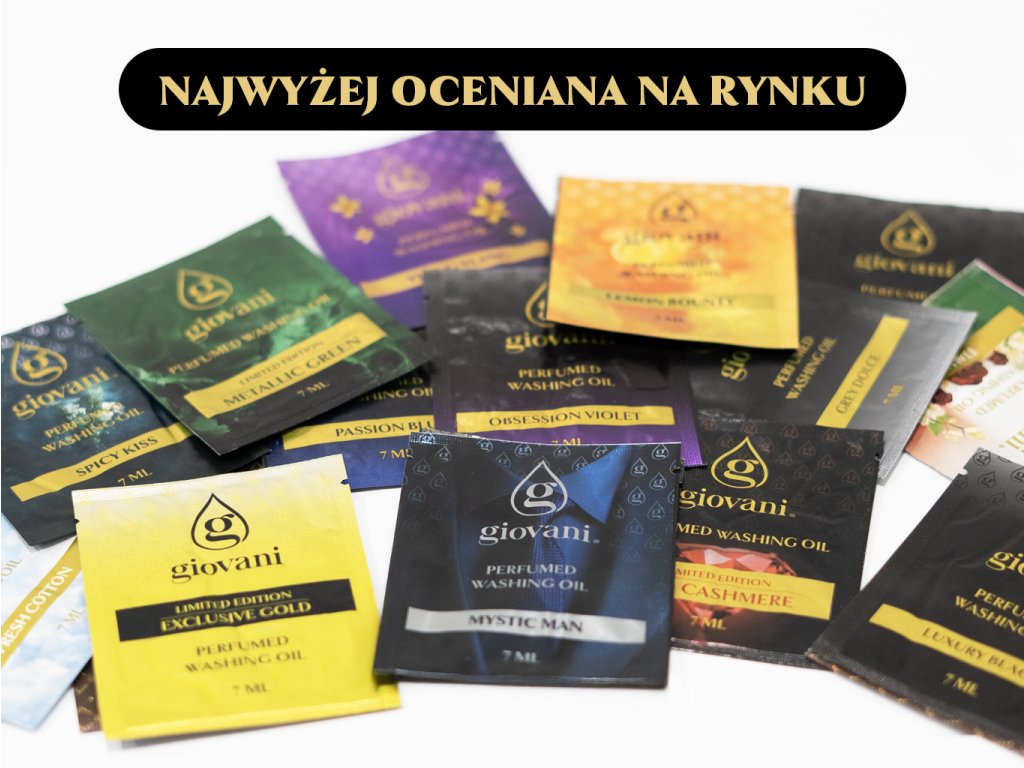 - zawiera po 1 sztuce każdej próbki z najpopularniejszych zapachów Giovani®